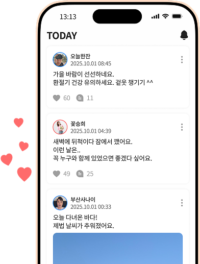 SNS처럼 자연스럽게 소통하는 공간 TODAY에서 부담없이 소통하고 취향이 비슷한 ‘달링’도 찾아보세요.