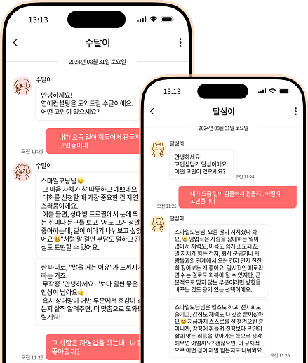 마이달링 공식 AI 상담사 수달이·달심이에게